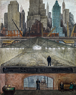 En diciembre de 1931, en la inauguración de la retrospectiva de Rivera en El Museo de Arte Moderno, el artista presentó cinco tableros murales con tema mexicano. En enero de 1932 agregó tres frescos a la exposición, que muestran el trabajo y la construcción durante la era de la Depresión en Nueva York. Para conocer más acerca de los murales portátiles de Rivera.
